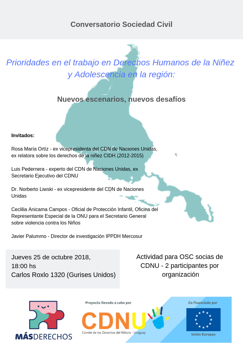 Publicado octubre 23, 2018 en 794 × 1123 en 181025 – 25 octubre, 18 hs – Conversatorio: Prioridades en el trabajo en Derechos Humanos de la Niñez y Adolescencia en la región: Nuevos escenarios, nuevos desafí­os