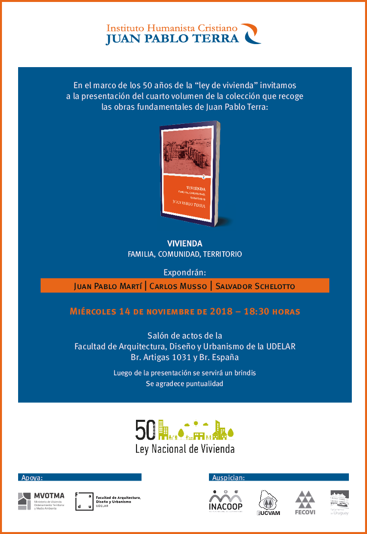 Publicado noviembre 7, 2018 en 750 × 1090 en 181114 – 14 noviembre, 18:30 hs – presentación del libro «VIVIENDA. Familia, comunidad, territorio» que recoge las principales contribuciones de Juan Pablo Terra en materia de vivienda