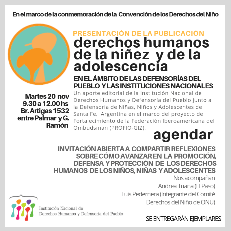 Publicado noviembre 19, 2018 en 800 × 800 en 181120 – 20 noviembre, de 9:30 a 12 hs – Conversatorio «Derechos humanos de la niñez y de la adolescencia, en el ámbito de las defensorías del pueblo y las instituciones nacionales»