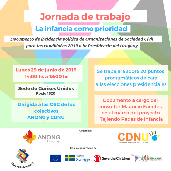 Por este medio les convocamos para una jornada donde se trabajará en base a 20 puntos programáticos de cara a las elecciones presidenciales, sobre un documento base a cargo de Mauricio Fuentes, consultor del proyecto «Tejiendo Redes de Infancia».