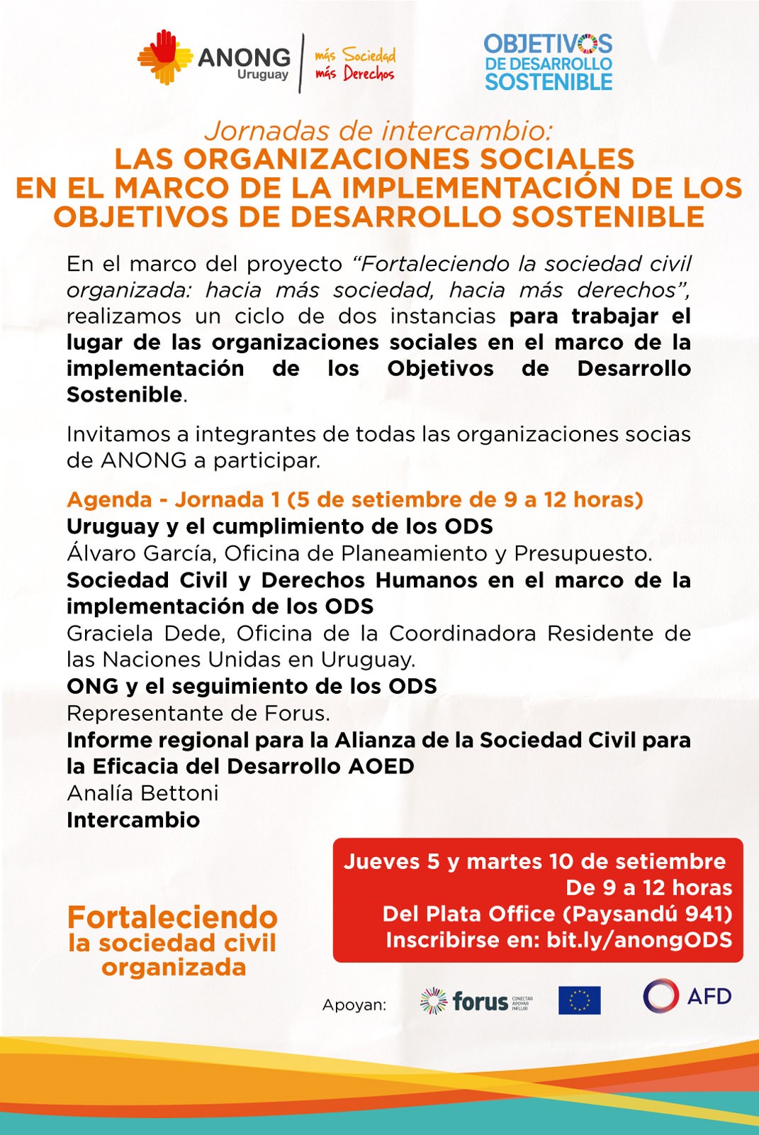 Publicado agosto 21, 2019 en 1071 × 1600 en 190905 – 5 Y 10 setiembre, de 9 a 12 hs – ANONG – Jornadas de intercambio «Las organizaciones sociales en el marco de la implementación de los Objetivos de Desarrollo Sostenible»