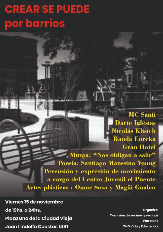 191115 – 15 noviembre, de 19 a 24 hs – CREAR SE PUEDE POR BARRIOS Imagen | Publicado el noviembre 15, 2019 por Vida y Educación Viernes 15 de noviembre, de 19 a 24 hs en Plaza Uno de la Ciudad Vieja Comparte esto: Haz clic para compartir en LinkedIn (Se abre en una ventana nueva) LinkedIn Haz clic para compartir en Facebook (Se abre en una ventana nueva) Facebook Haz clic para imprimir (Se abre en una ventana nueva) Imprimir Haz clic para enviar un enlace por correo electrónico a un amigo (Se abre en una ventana nueva) Correo electrónico Me gusta Cargando... Relacionado