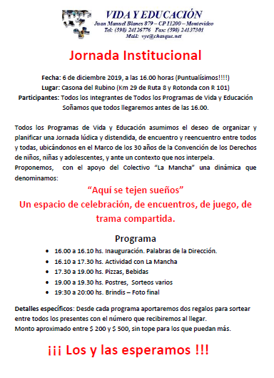 Publicado diciembre 3, 2019 en 384 × 530 en 191206 – 6 diciembre, 16 hs – III Jornada Institucional de VIDA Y EDUCACION
