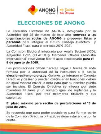 Invitamos a integrantes de todas las organizaciones socias de ANONG a participar.