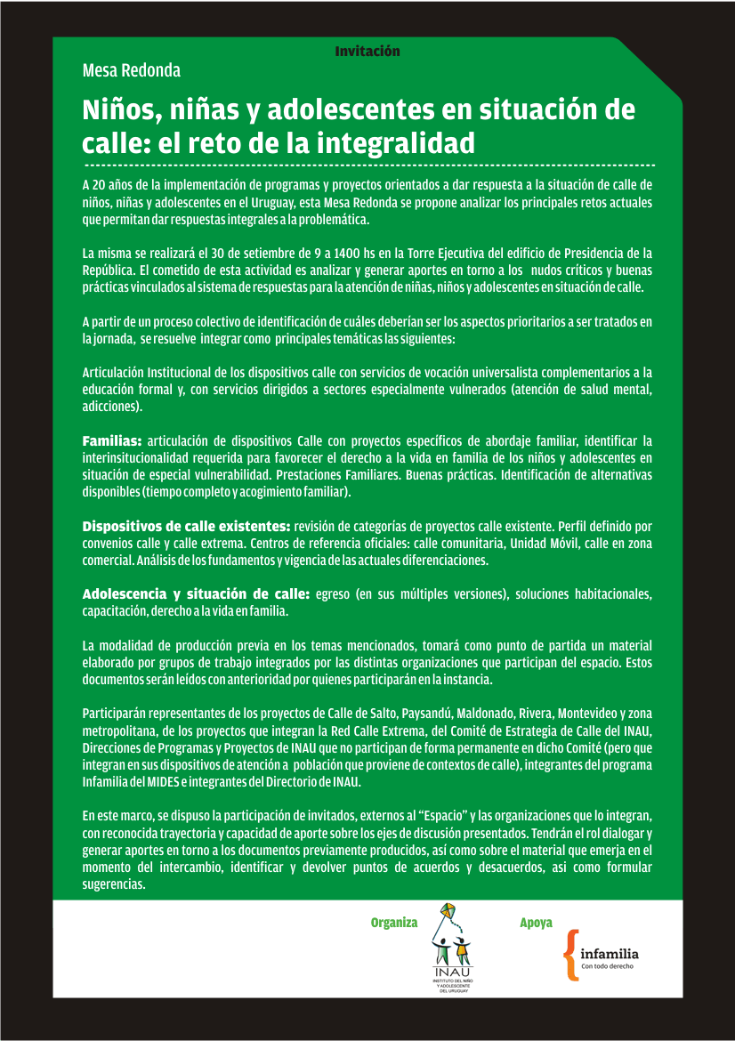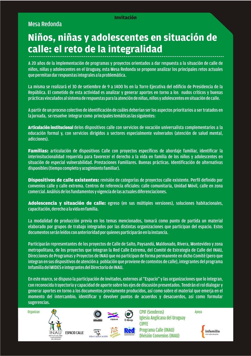 El Programa Cruz del Sur se propone modificar las situaciones de niños, niñas y adolescentes que desarrollan diversas actividades de sobrevivencia o permanecen en calle en distintas zonas de Montevideo