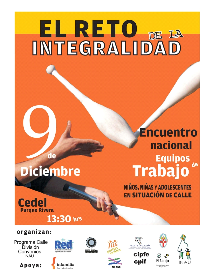 En 2010, en el marco de la agenda anual, se lleva adelante una mesa redonda: “Niños/ as y adolescentes en situación de calle: el reto de la integralidad”. A 20 años de la implementación de Programas y Proyectos orientados a dar respuesta a la situación de calle de niños/ as y adolescentes en el Uruguay, esta mesa redonda responde a la necesidad de analizar los principales retos actuales que permitan dar respuestas integrales a la problemática.