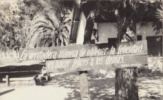 Este cartel forma parte de la pre-historia de VIDA Y EDUCACIÓN: estaba colocado en la «El Rincón», una de las chacras de los Scouts Católicos en donde se instaló la comunidad de jóvenes que dió origen a la Chacra Hogar «La Frontera»