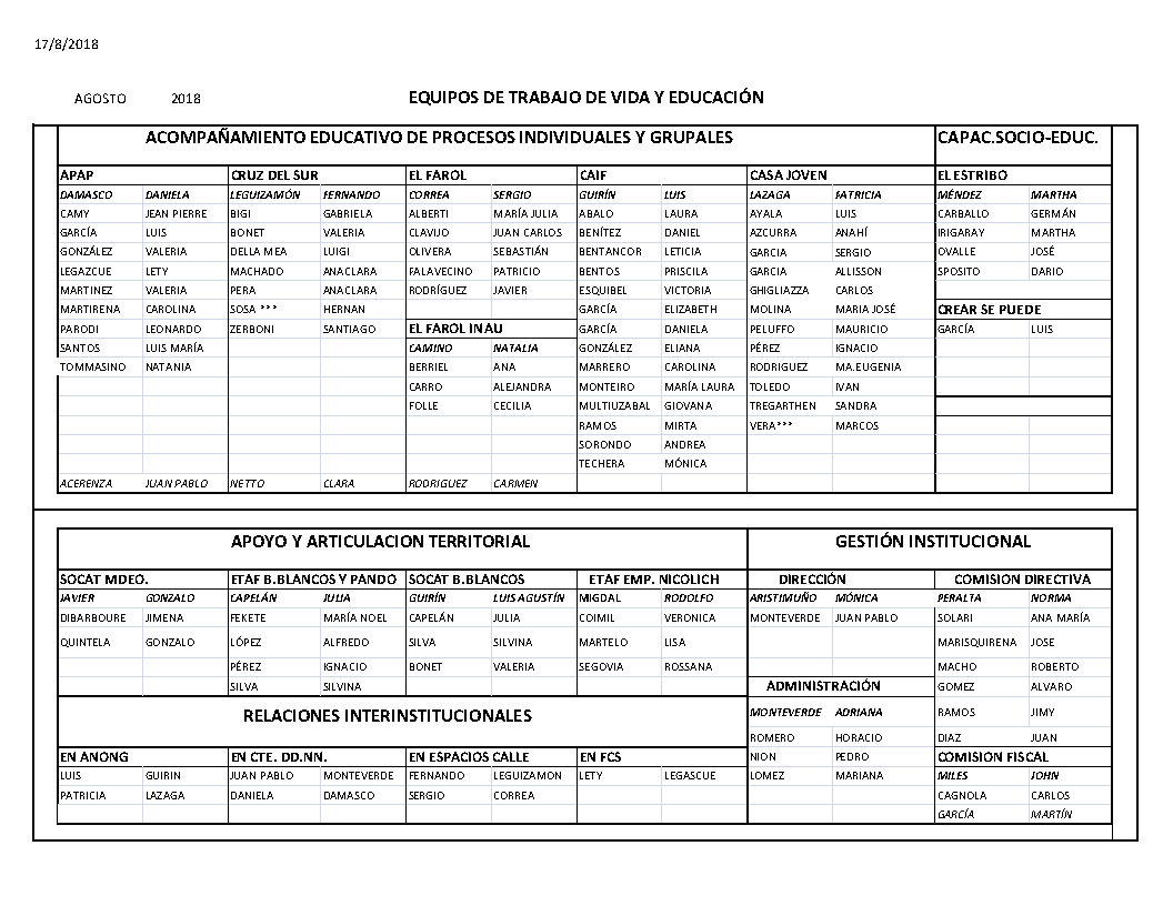 Equipos de trabajo VIDA Y EDUCACION 20180817