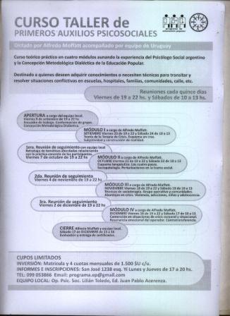 Curso Taller de Primeros Auxilios Psicosociales, con Alfredo Moffatt