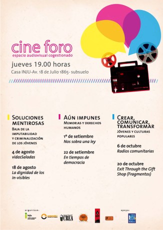 110804 – 4 y 18 ago, 1 y 22 set, 6 y 20 oct – 19 hs – Cine Foro en Casa INJU