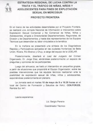 110510 – 10 mayo de 9 a 16:30 hs – Jornada de Intercambio sobre Explotación Sexual de NNA