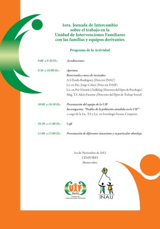 121101 – 1 noviembre, de 9 a 13 hs – 1a. Jornada de Intercambio sobre el trabajo en la Unidad de Intervenciones Familiares – INAU