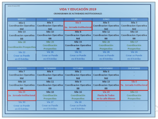 190215 – VIDA Y EDUCACION – CRONOGRAMA DE ACTIVIDADES INSTITUCIONALES